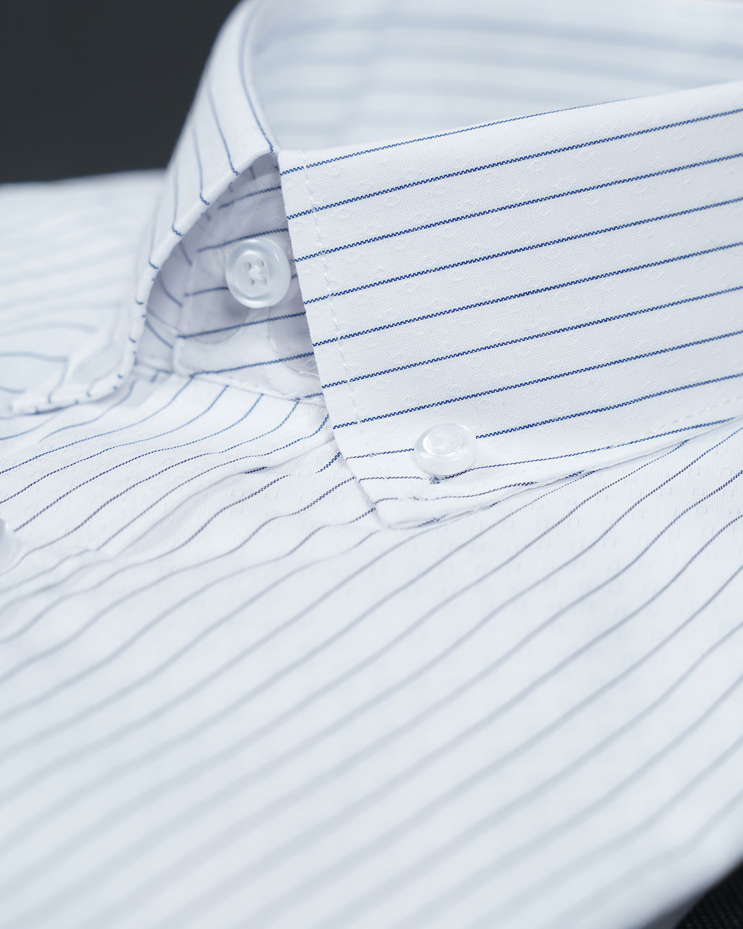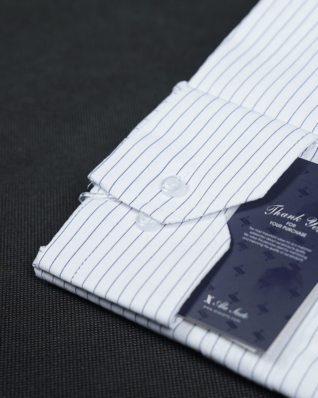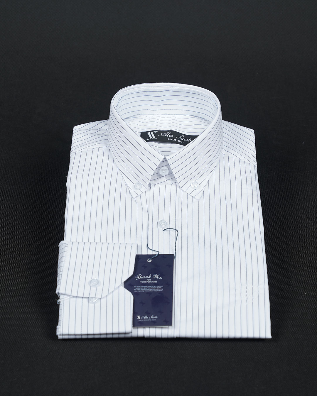 پیراهن آستین بلند راه راه سفید سورمه ای