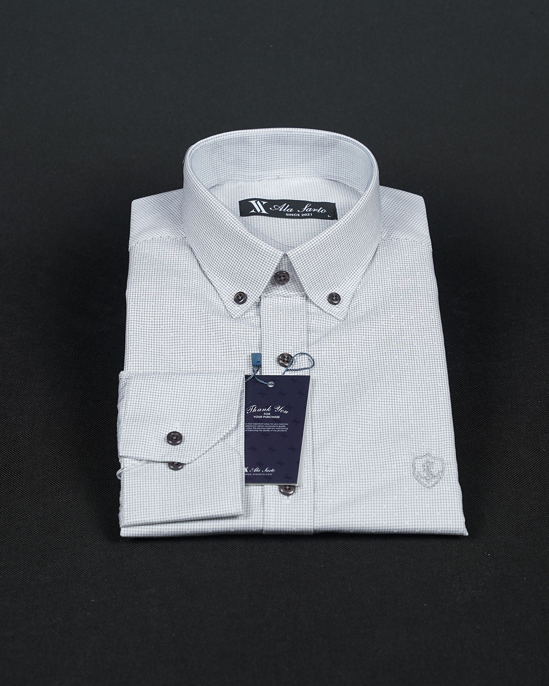 / پیراهن آستین بلند چهارخانه ریز طوسی